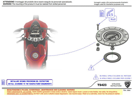 • Vulopening met snelle sluiting Troy Bayliss Limited Edition CNC Racing Ducati Panigale V4/S (2025) TS423TB