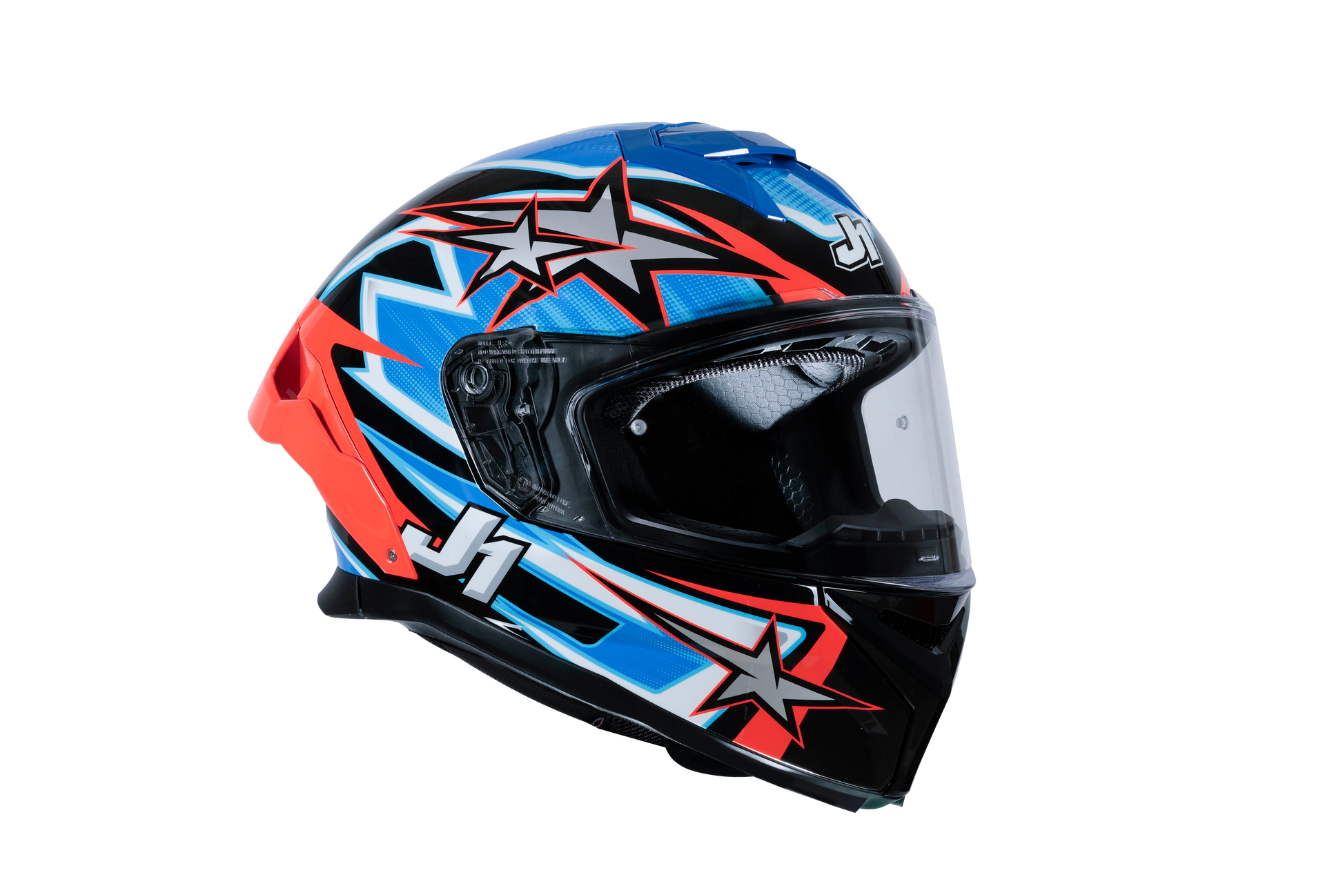 Met de JUST1 J-STR Astro krijg je een opvallend ontworpen integraalhelm die sportiviteit, comfort en hoogwaardige veiligheidsnormen combineert. De glanzende Rood/Blauw/Zwart-grafiek maakt hem tot een echte blikvanger – perfect voor sportieve straat- en nakedbike-rijders.