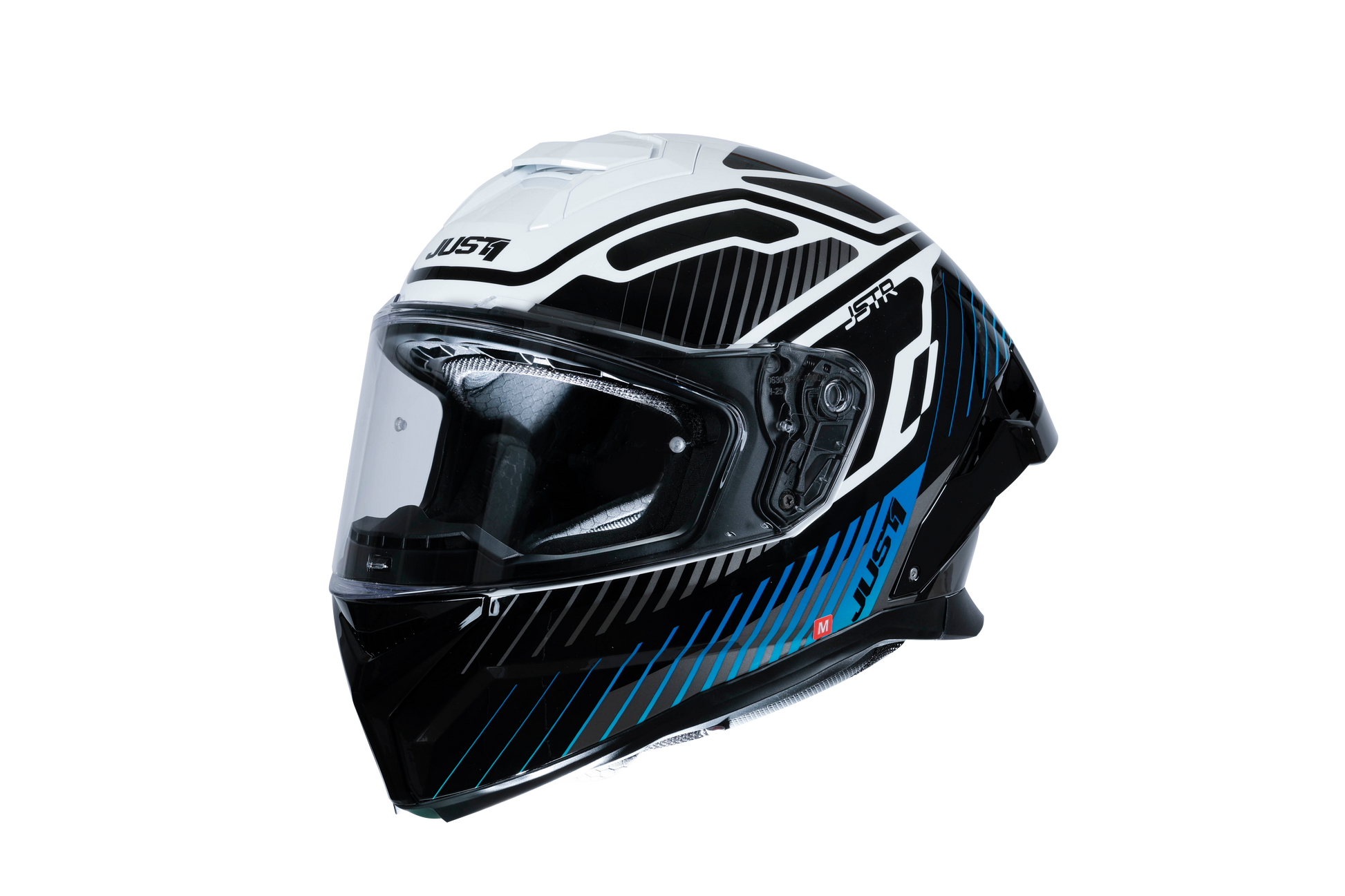 De JUST1 J-STR Tactical combineert een sportieve lijnvoering met een opvallende blauw-witte racinglook. Het glanzende oppervlak benadrukt de heldere, dynamische uitstraling en maakt de helm ideaal voor sportieve straatmotoren, naked bikes en toerritten.