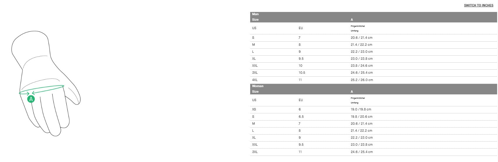 | US | EU | Omvang van de vingerknokkel |