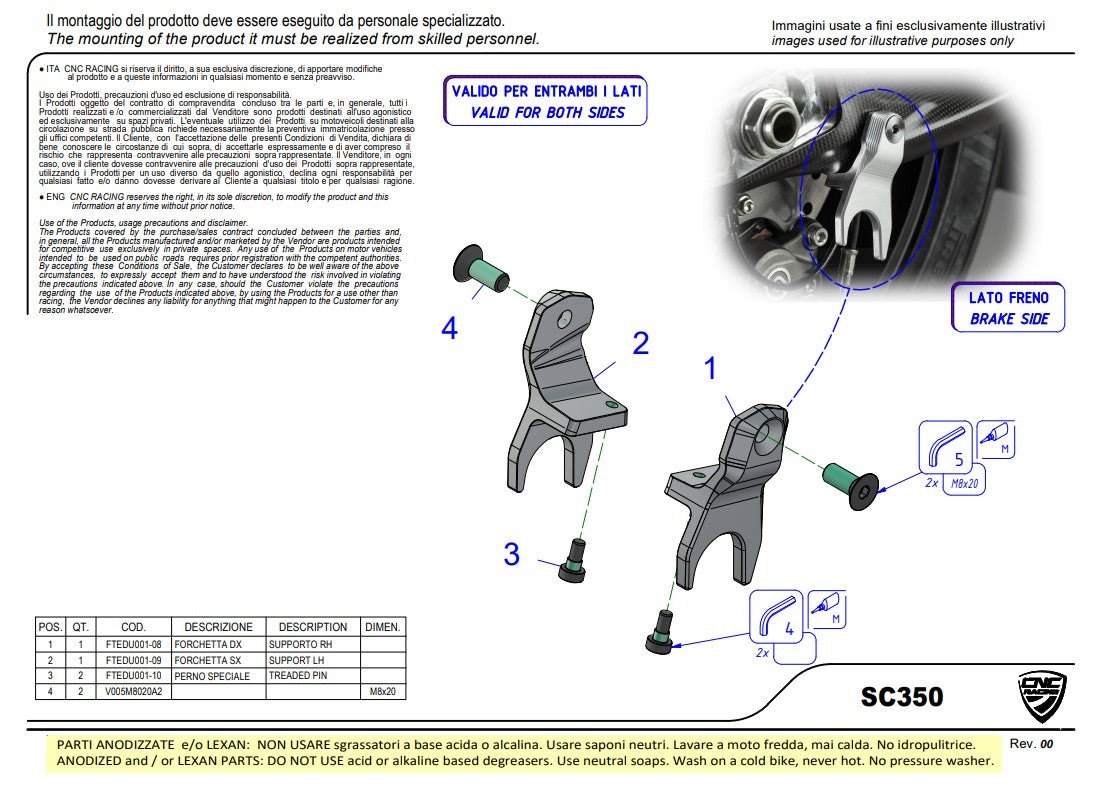 De CNC Racing standaardbeugels (SC350) zijn speciaal ontwikkeld voor de Ducati Panigale V4/S (modeljaar 2025). Ze maken het veilig gebruik van achterstands met rolbeugels mogelijk en vergemakkelijken zo onderhoud, verzorging en gebruik op het circuit.