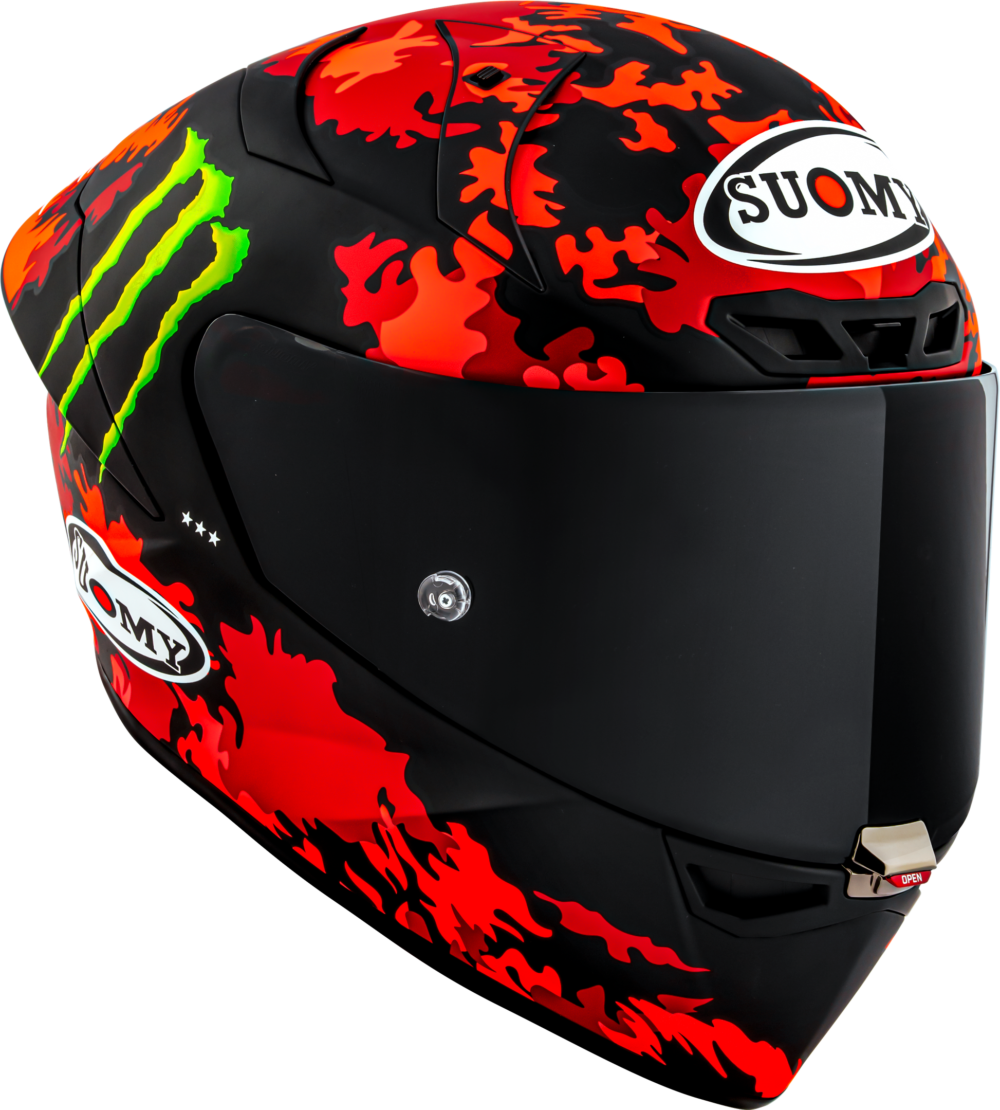 De Suomy S1-XR GP helm Francesco „Pecco“ Bagnaia Monster Replica 2025 combineert compromisloze veiligheid, eersteklas aerodynamica en het iconische Monster-ontwerp van wereldkampioen Pecco Bagnaia. Met zijn FIM-homologatie voldoet hij aan de hoogste internationale race-standaarden en is ontwikkeld voor rijders die geen compromissen willen sluiten.