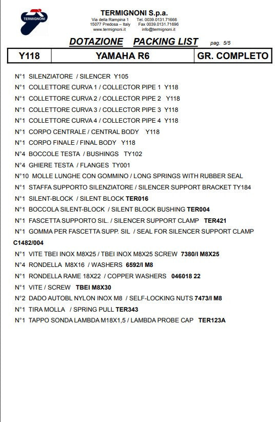 Termignoni Complete Titanium Kit-SSP Versie Yamaha YZF-R6 (06-25) Y11810200TCC