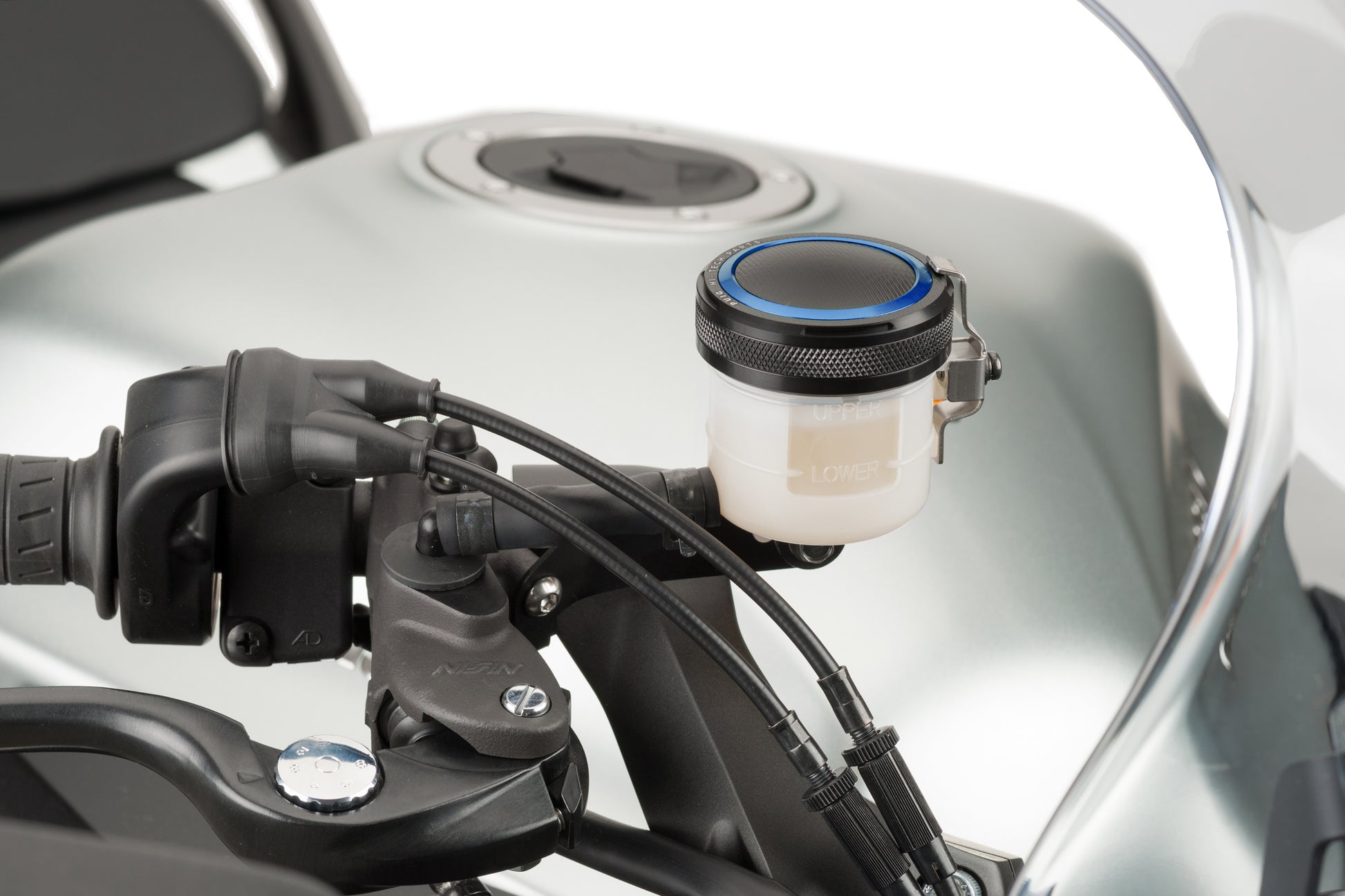 De standaard kunststof afdekking wordt vervangen door een nauwkeurig CNC-gefreest aluminiumdeksel, dat niet alleen het remvloeistofreservoir opwaardeert, maar het tegelijkertijd betrouwbaar beschermt.