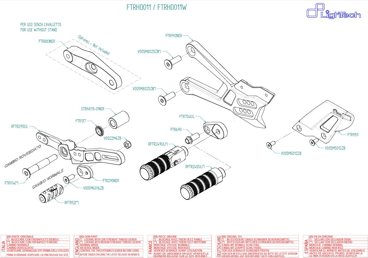 De LighTech voetsteunenset FTRHO011/W voor de Honda CBR 1000 RR-R Fireblade SC82 (bouwjaren 2020–2025) is ontwikkeld met directe ervaring uit de MotoGP en WSBK. Het combineert de hoogste verwerkingskwaliteit met functionaliteit en sportieve uitstraling – perfect voor veeleisende rijders op de weg en het circuit.
