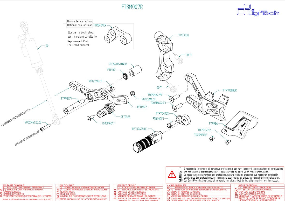 Het LighTech voetsteunensysteem R (FTRBM007R) is ontwikkeld voor de BMW S1000RR K67 (modeljaren 2019–2025) en voldoet aan de hoogste eisen op het gebied van materiaalkwaliteit, rijprecisie en racenfunctionaliteit.
