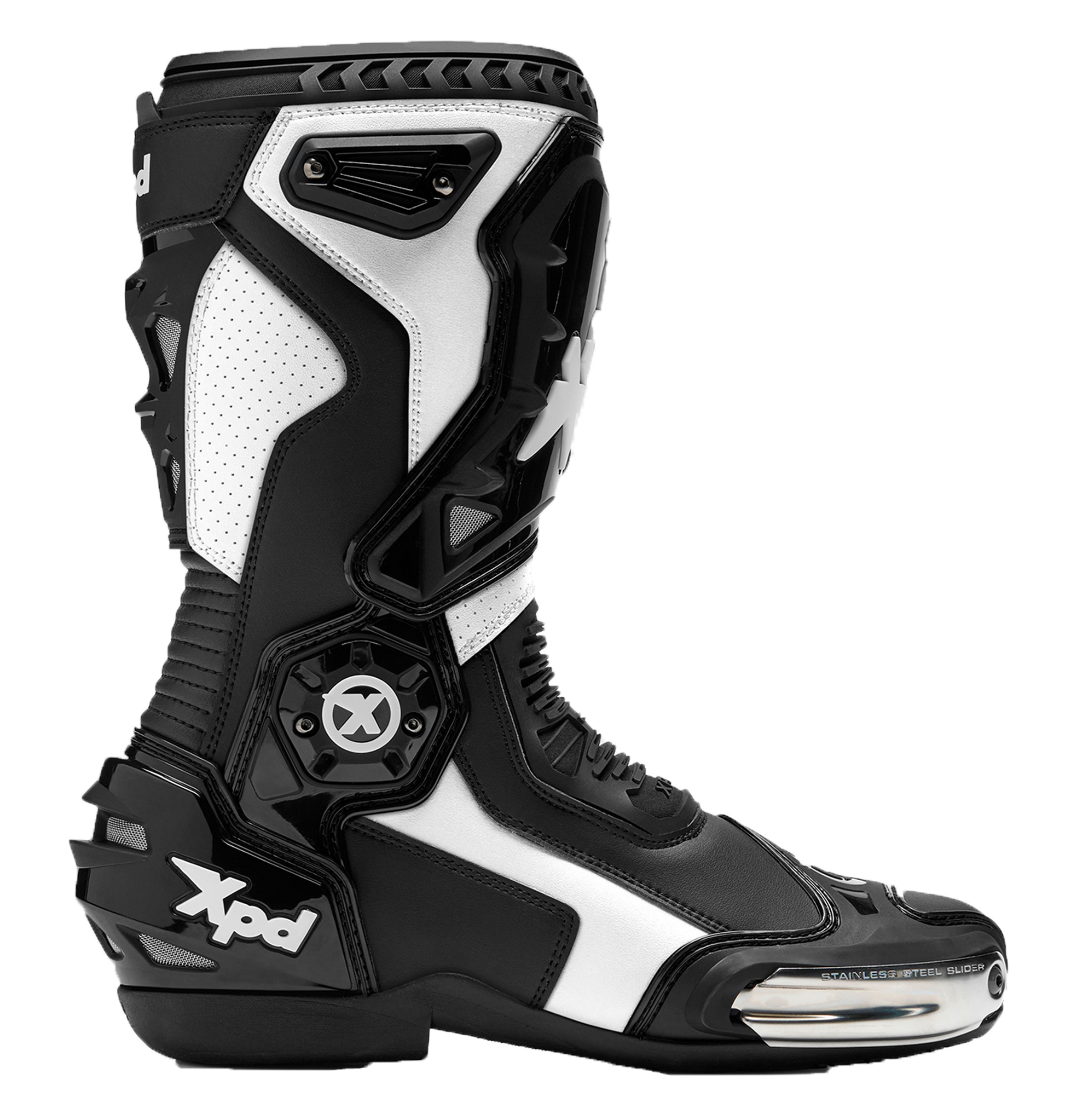 De XPD XP-MODE in Zwart/Wit is gericht op motorrijders die sportief rijden, maar in het dagelijks leven een laars nodig hebben die eenvoudig functioneert: stabiel op de voetsteun, comfortabel op de schacht, snel gesloten – en robuust genoeg voor vele kilometers. De uitstraling is bewust schoon en past zowel bij de leren combinatie als bij de textiele combinatie. Technisch blijft de XP-MODE wat XPD belooft: “Vorm volgt functie” – elke lijn heeft een doel.